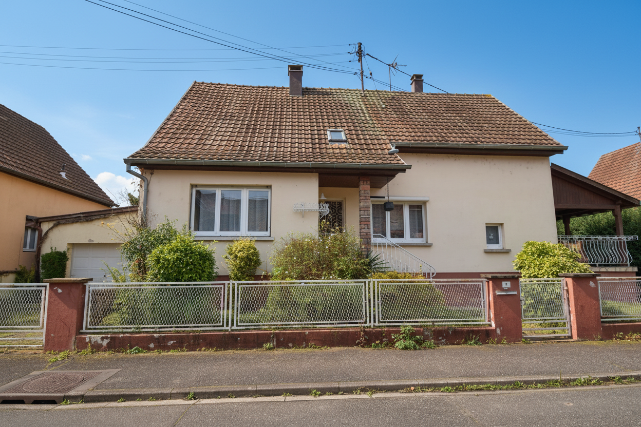 Maison individuelle de 135,03 m² habitables (145,47 m² au sol) située à Rhinau, implantée sur un terrain de 325m², offrant une belle base de volumes pour un projet de rénovation complet et personnalisé.