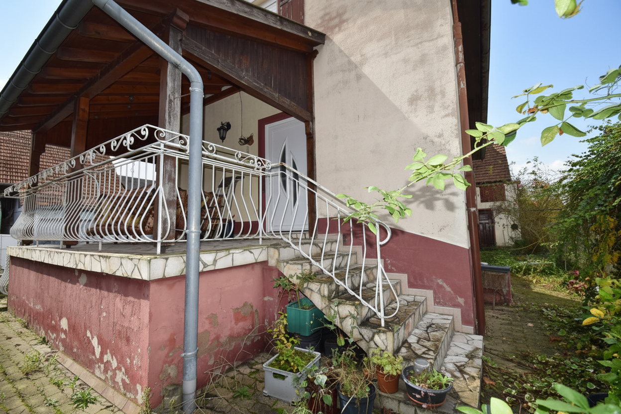 Projet de rénovation à Rhinau: Maison de 135m² sur 325m² de terrain. Beaux volumes, 4 chambres, terrasse, cave, grenier. Fort potentiel de valorisation.