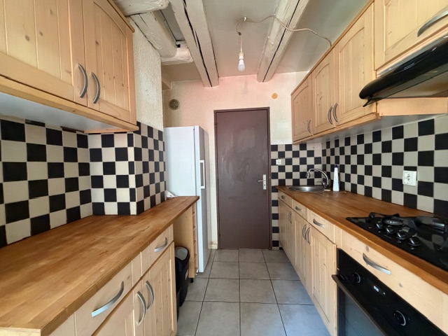 D’une surface d’environ 77 m² répartis sur trois niveaux, le bien se compose d’un petit séjour, d’un espace cuisine, d’une salle de bains au RDC.